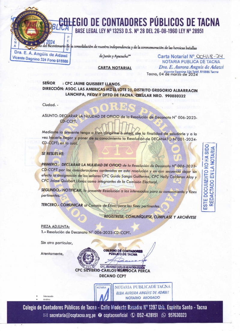 CARTA NOTARIAL JAIME QUISBERT LLANOS
